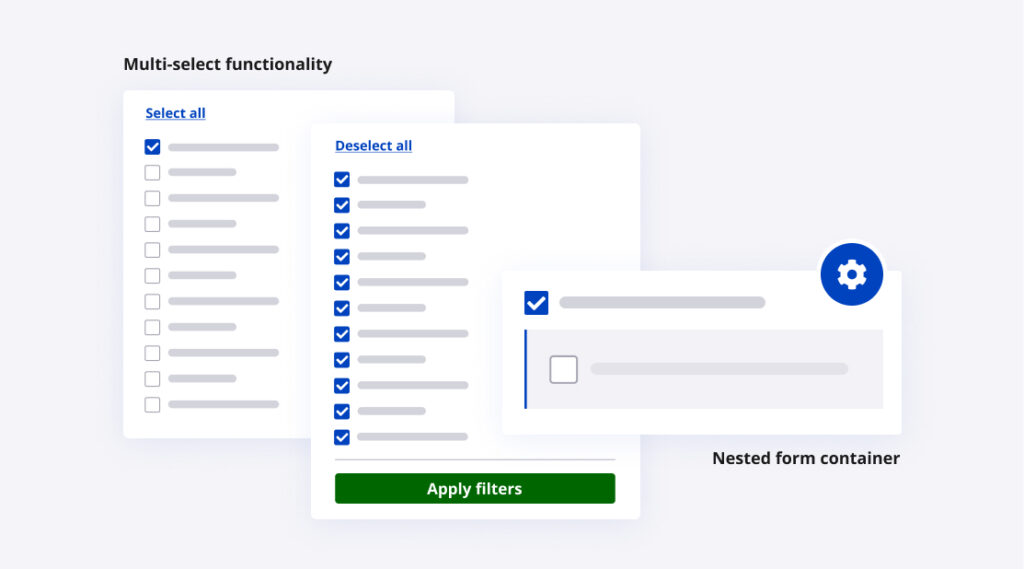 Form fields that trigger additional form elements have been updated to clearly delineate the form hierarchy. This helps make the relationship between parent form fields and their children evident.