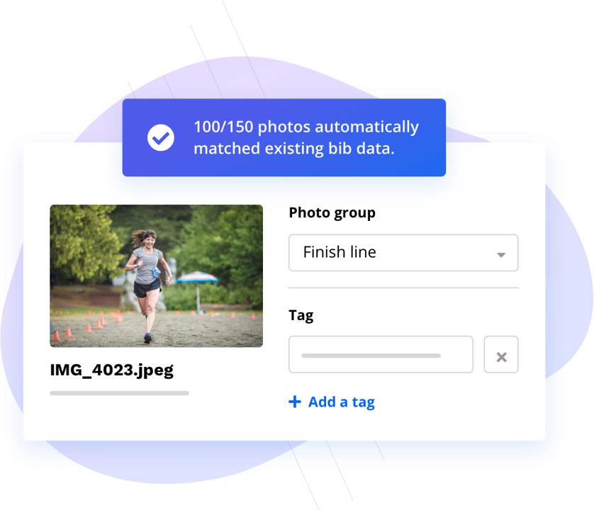 Collaborate with event partners to upload race photos and allow our intelligent tagging technology to do the heavy lifting for you. Add customised watermarks, sort your photos into groups, and let participants know when they’re ready!